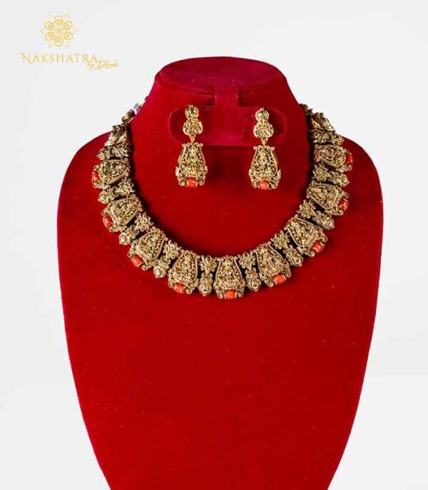 Antique Coral Red Temple Deity Choker Necklace Set