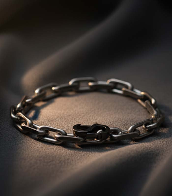 Polished Metal Link Chain Bracelet with Hook Style Clasp. Great for unisex styling.