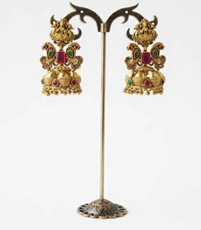Grand Antique Lakshmi and Peacock Jhumka Earrings